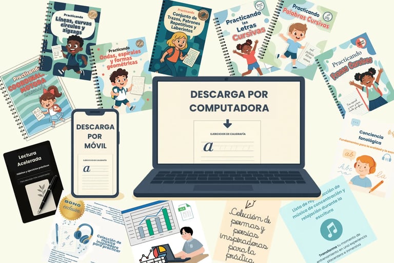 Son más de 400 páginas con absolutamente todo lo que su pequeño(a) necesita para escribir con más rapidez y eficiencia.